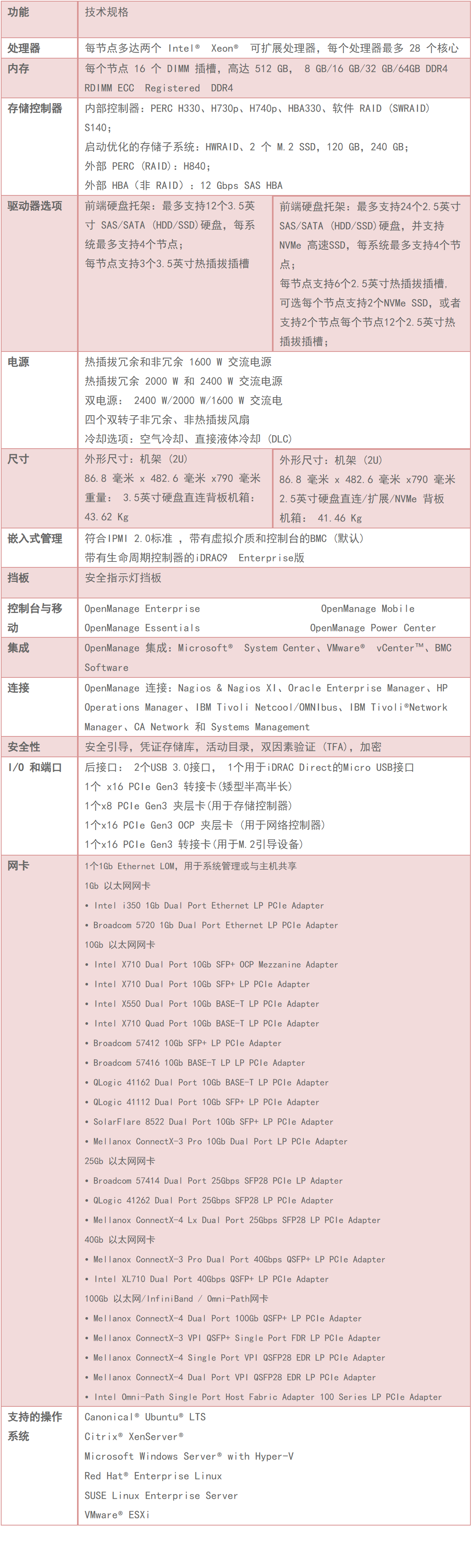 • 此外,还可以利用集成的采用生命周期控制器的iWeb和 Redfish API,给予高级管理和脚本编制支持。