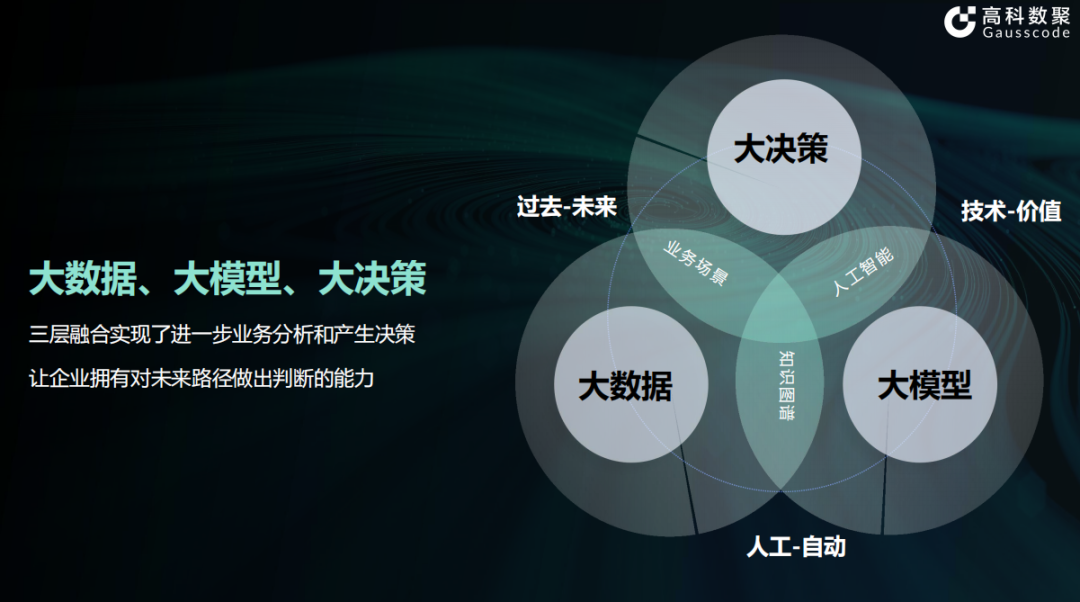 董琳认为,新一轮的科技革命和产业变革已开始对企业和市场的影响日益显著,数字技术正在根本性地改变企业的生产模式。面对庞大而复杂的数据洪流和日趋严峻的市场环境,企业需从具体的业务场景出发,整合大数据、大模型和大决策等技术力量,以促进业务场景的深度分析和决策优化。