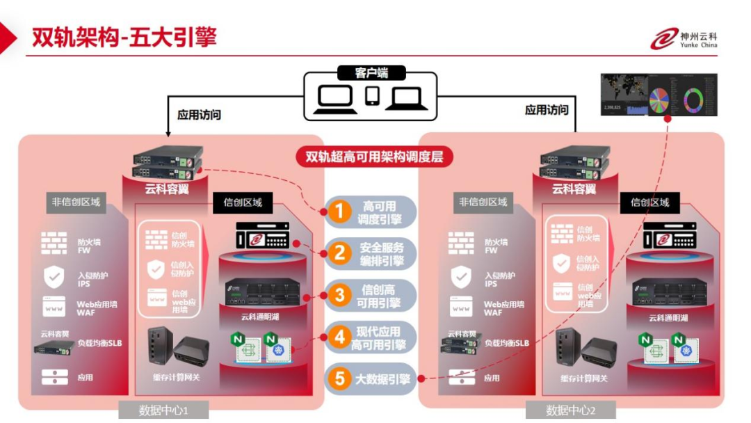 数据中心架构在自主创新的过程中分解为现有架构的非信创区和信创区的两个业务区域,在每个数据中心分为信创区和非信创区后,在两个区域之间的跨区跨域协同方法,dcbox小金库app顺利获得5大引擎实现多层次的应用可持续性实践。